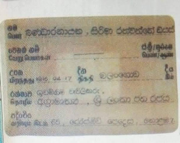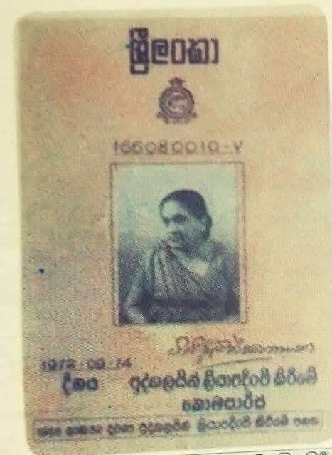 ඒ අනුව 1972 වසරේ සැප්තැම්බර් 14 වැනි දින මුල්ම ජාතික හැඳුනුම්පත නිකුත් කළේය. එහි හිමිකාරීත්වය ලැබුවේ එවකට අග්රාමාත්යවරිය ලෙස කටයුතු කළ සිරිමාවෝ බණ්ඩාරනායක මැතිනියයි. ඇයගේ අංකය වන්නේ 166080010 V යන්නයි.