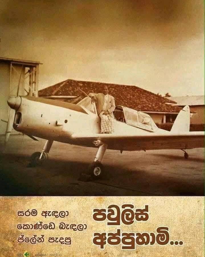සරම ඇඳලා කොණ්ඩෙ බැඳලා ප්ලේන් පැදපු අත්තනගල්ලේ පදිංචිව සිටි පවුලිස් අප්පුහාමි නොහොත් උක්කු මහත්තයා එදා රත්මලාන ගුවන් තොටුපොළට ගියේ ගුවන් යානා ඉහළට නංවන හා පහත බස්සවන හැටි දැකබලාගැනීමට
